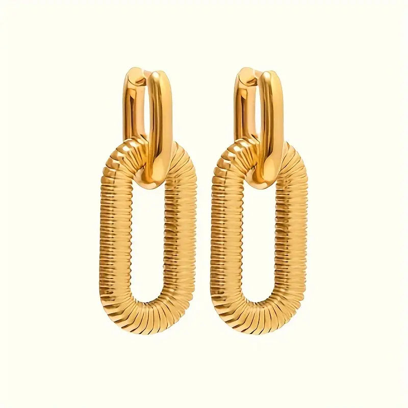 Boucles d'Oreilles Pendantes Boho Chic en Acier Inoxydable 316 Plaqué Or 18K - Design Géométrique Rectangulaire et Ovale avec Chaînes