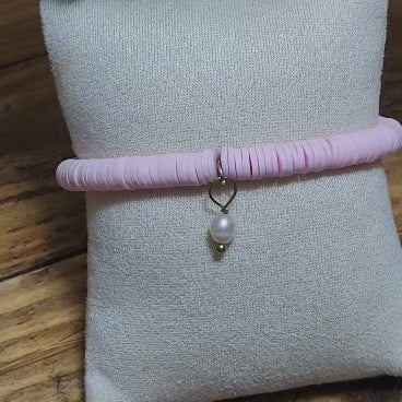Un joli bracelet hand made avec une perle d'eau douce pendue.